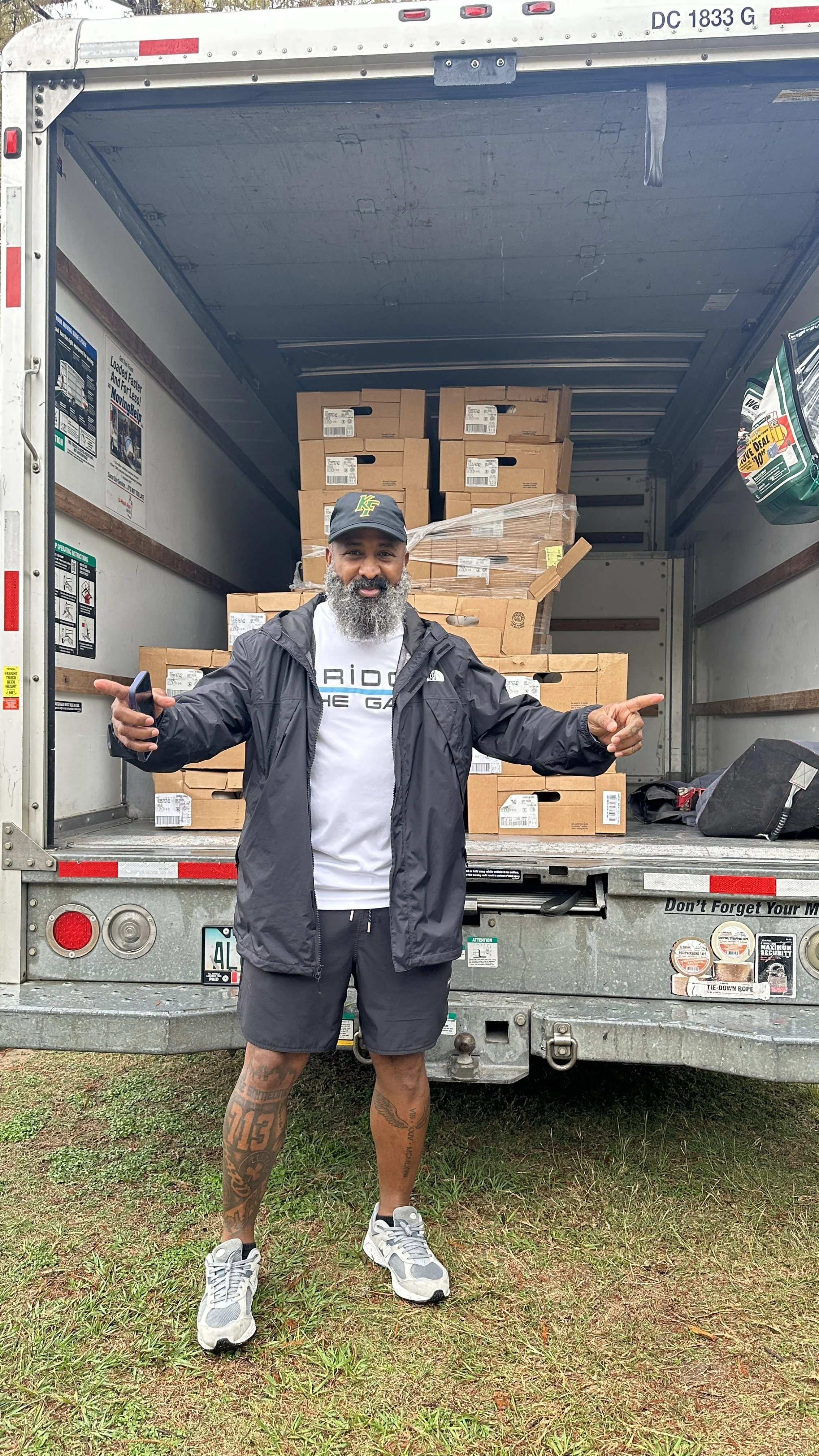 “We also had a great turnout from the students! We had several Klein Forest High School athletic students and members of the adminstration ready and eager to help with passing out turkeys, despite the wet start to the day! We also had some laughs, some fun, and lots of hugs from very thankful recipients. That’s what it’s all about.” Durham reflects.